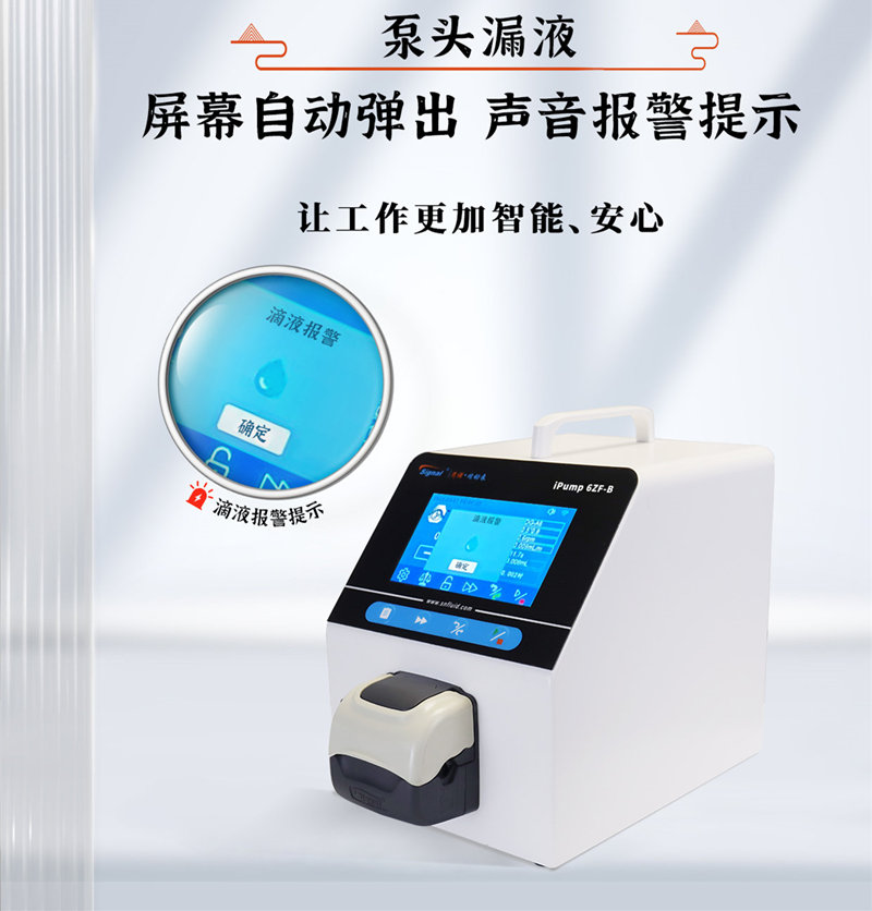如果泵頭漏液,不僅浪費了寶貴的液體資源,還可能對使用環(huán)境造成損害。ipump4ZF-B+FT15漏液報警功能,能夠及時檢測到漏液情況,并通過彈窗和聲音的組合方式進(jìn)行報警提示,幫助用戶及時采取措施,避免不必要的損失。