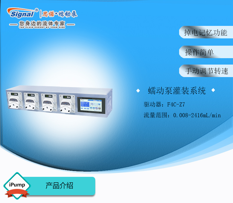 此灌裝系統(tǒng)由4通道組成,通道數(shù)量可定制,大可擴展至32通道;可安裝YZ15、YZ25泵頭;