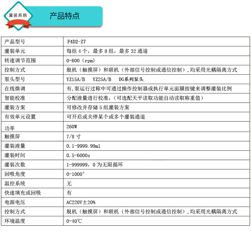 此灌裝系統(tǒng)由4通道組成,通道數(shù)量可定制,大可擴(kuò)展至32通道;可安裝YZ15、YZ25泵頭、DG泵頭;