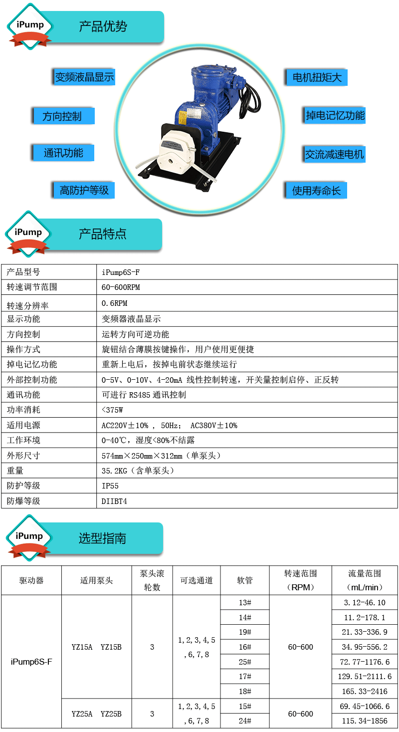 ? ? ? 1.流量范圍:3.12-2416mL/min ? ? ? 2.免維護交流防爆減速電機驅(qū)動,變頻器調(diào)節(jié)轉(zhuǎn)速 ? ? ??3.電機扭矩大,可級聯(lián)雙泵頭 ? ? ? 4.防爆等級DIIBT4,適合易燃易爆環(huán)境使用