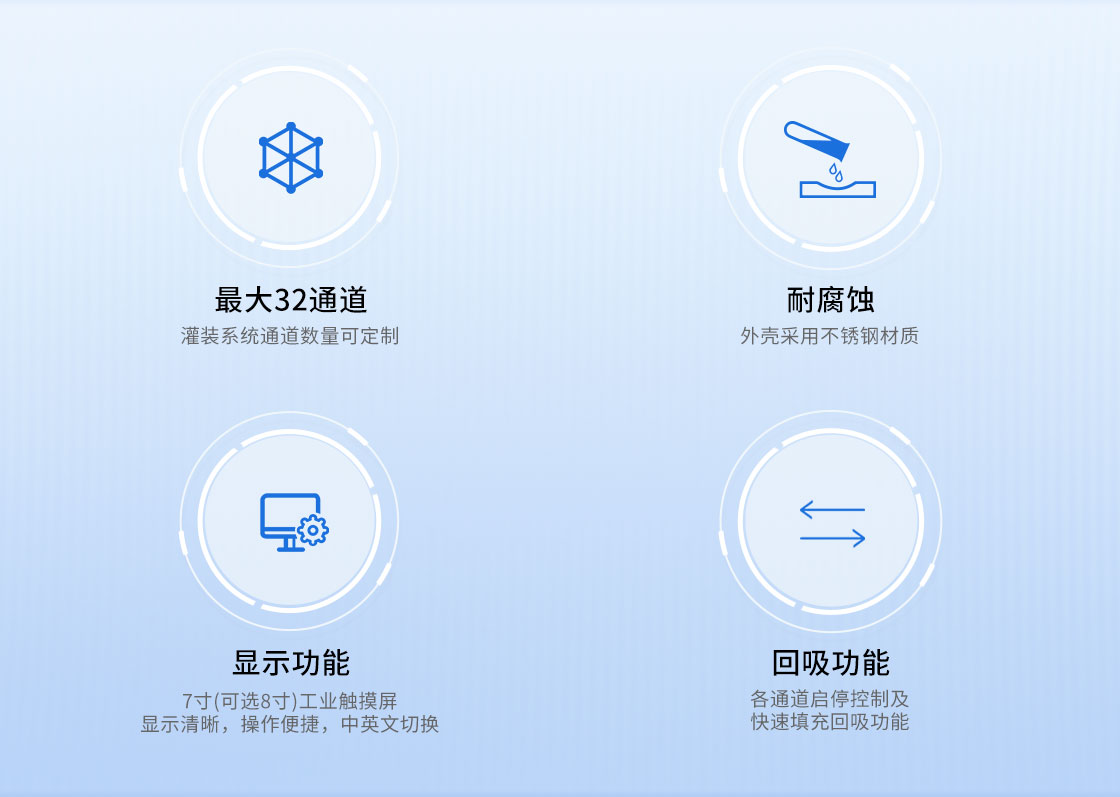 1.可擴(kuò)展32通道,灌裝系統(tǒng)通道數(shù)量可定制