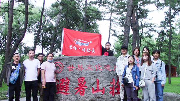 藍天白云,笑容洋溢 ,做在大巴車上同事們有說有笑,看著一路的風景,6個小時的車程,很快到達了避暑山莊。思諾團隊一起來到避暑山莊正門口拍照留念。