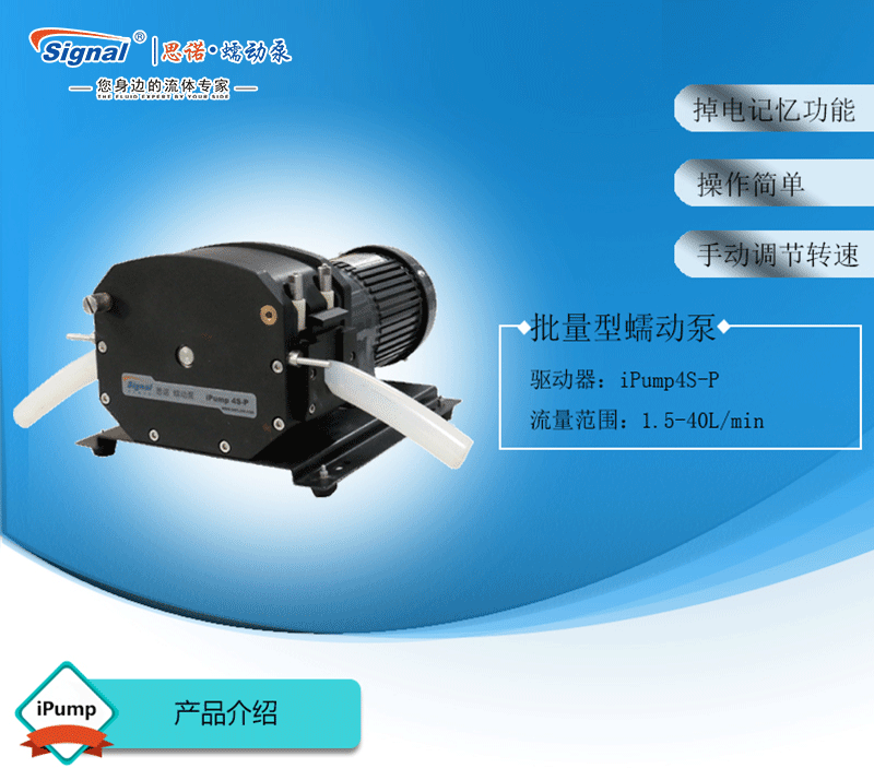 ? ? ?1.流量范圍:1.5-40L/min ? ? ?2.彈性壓管結構,軟管壽命長,非常適合大流量液體傳輸 ? ? ?3.免維護交流減速電機驅動,變頻器調節轉速 ? ? ?4.全金屬泵頭,高精度,更可靠 ? ? ?5.高防護等級,更適合惡劣環境中使用